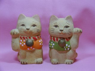 瀬戸の招き猫さん 愛知県瀬戸市へ遠征の際に連れ帰った招き猫さん。 なぁ〜んだかとっても人間ぽいお顔付き(=^m^=)