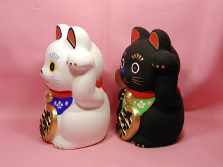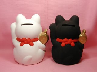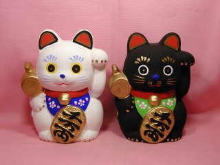 小槌招き猫さん 打ち出の小槌を持ったクリクリお目目のかわいい招き猫さん。 体つきもプクプクのまん丸で愛らしい感じです。