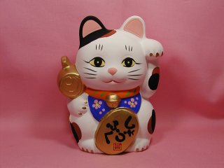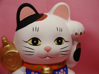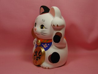 小槌招き猫さん スッとした目元の小槌を持った招き猫さん。 お顔付きによって、ずいぶん雰囲気が変わります。
