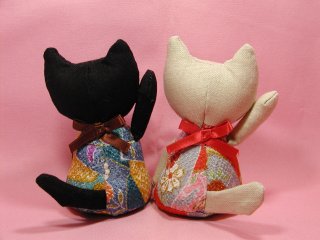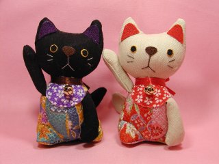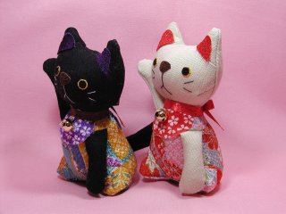 縮緬招き猫さん 2006年のお誕生日にプレゼントして頂いた招き猫さん。 綺麗な縮緬の服を着た布製ですが、かなりしっかり出来ています。