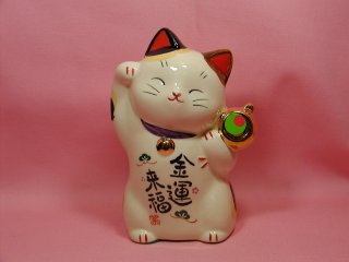 金運来福招き猫さん 招き猫まつりのスランプラリーの賞品で頂いた招き猫さん。 お馴染み「薬師窯」の招き猫さんです。