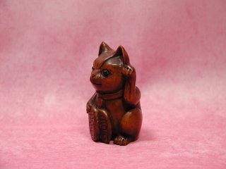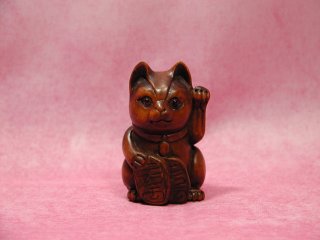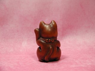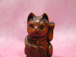 つげ招き猫さん 滋賀県遠征の際に立ち寄った長浜の骨董屋さんから連れ帰りました。 お店のおばさんによると、つげの木で造られているとか。。。