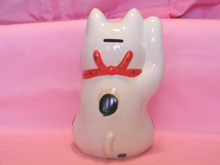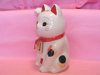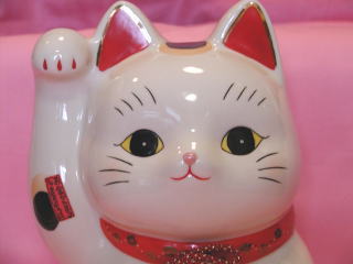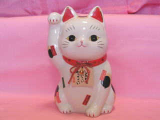 しあわせこいこい招き猫さん 瀬戸の招き猫まつり遠征の際に参加した輪投げゲームの賞品の招き猫さんです。 1等賞から3等賞(だったかな?)と参加賞の招き猫さんたちがいました。 最初は遠巻きに見ていたお客さんたちもワラワラと(=^m^=)集まって来て、 ゲームに興じていました。ねこ丼家もその中の一員。うはは。