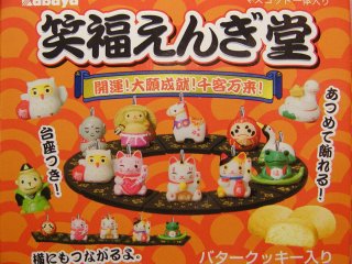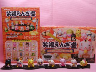 笑福えんぎ堂 毎年年末恒例の食玩「えんぎ堂」。2006年は台座付きの「笑福えんぎ堂」。 全20種のうち、招き猫さんは7種+シークレット1種。 さすがにシークレットの招き猫さんはゲットできなかったです(>_<)ゞ
