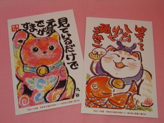 絵手紙公募展入賞作品はがき 伊勢来る福招き猫まつりで開催された絵手紙公募展で入賞された方々の 絵はがきです。どれも力作\(◎o◎)/!