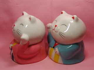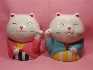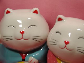 百金招き猫さん 100円均一のお店で出会った招き猫さん。 女の子の招き猫さんには、ちゃ〜んとまつげが(=^m^=)