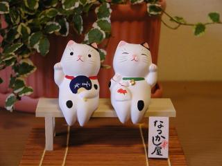 なつかしや招き猫 招き猫好きさんにはお馴染み(?)の、なつかし屋さんのお座り招き猫です。 招きながらも、うちわと金魚をもって涼んでいる。表情もほのぼのとしていて おばぁちゃんちの縁側にいるみたいな雰囲気です。