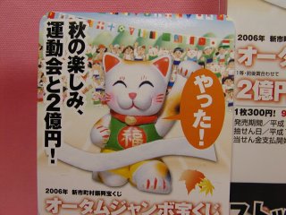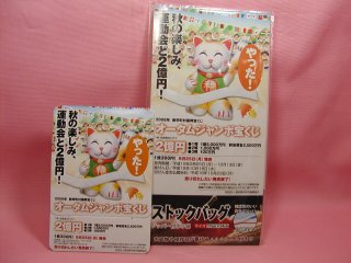 宝くじ招き猫さん 宝くじと言えば招き猫さん? おまけで頂いたストックバックとメモ帳です。 中身はフツ〜のストックバック(^^ゞ