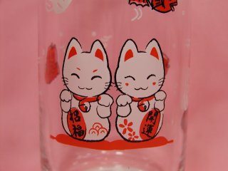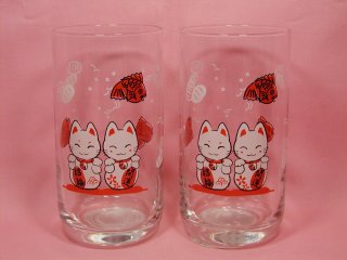 招き猫さんグラス 百均ショップで見つけた招き猫さんのグラスです。 両手上げの男の子と女の子の招き猫さん。 すぐ割れちゃうかな?と思ってたのですが、落としても割れなかったしっかり者(^^ゞ