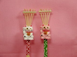 招き猫さん耳かき 招き猫さんがくっついた耳かきです。 先が幸せをかき集める熊手になっていて、幸せを招く招き猫さんとのコラボ(=^m^=) 縁起物の耳かきです。