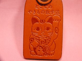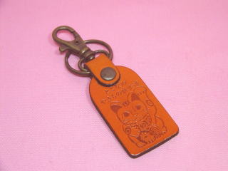 招き猫さんキーホルダー 招き猫さんの産地、愛知県の常滑から連れ帰った 招き猫さんのキーホルダーです。皮製です。