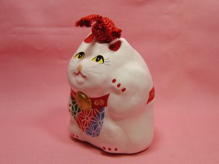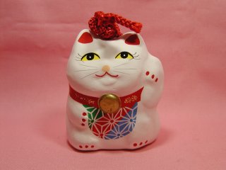 とやま土人形 2007年9月に三重県伊勢で開催された来る福招き猫まつりから 連れ帰った招き猫さんです。 富山県からいらっしゃった土人形の招き猫さん。 上目遣いの愛らしい招き猫さんです。土鈴になっています。