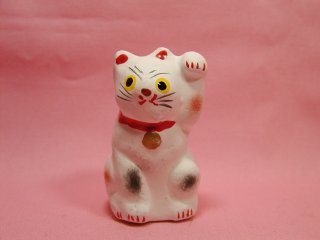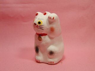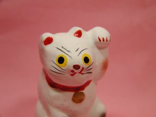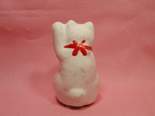 鴻巣練り物招き猫さん 2007年9月に三重県伊勢で開催された来る福招き猫まつりから 連れ帰った招き猫さんです。 埼玉県からいらっしゃった鴻巣練り物の招き猫さん。 鴻巣は桐材家具のおがくずを糊で固めた練り物の人形などが多く制作されているとのこと。 勇ましいお顔付き。