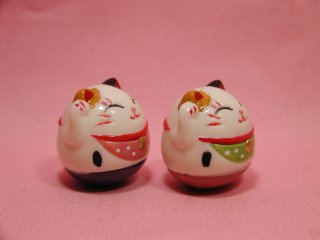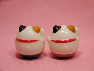 起きあがりこぼし招き猫さん 招き猫さんの産地として有名な愛知県常滑から 連れ帰った招き猫さんです。 起きあがりこぼしになっている小さな招き猫さんです。