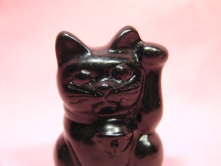 鉱石招き猫さん 招き猫さんの産地として有名な愛知県常滑から連れ帰った招き猫さんです。 確か。。。鉱石だったと思うのですが。。。すみません。 真っ黒なので写真も見えにくくてすみません。。。(>_<)ゞ