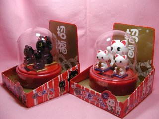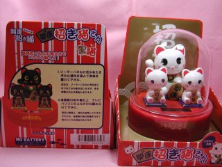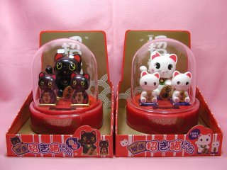ソーラーパワーで首を左右に振る親子の招き猫さんです。