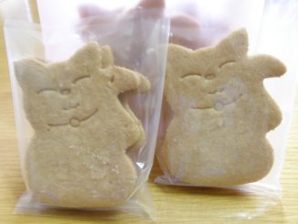 招き猫さんサブレ 伊勢の招き猫まつりで販売されたおかげ横町内にある「ケーキラボ」の招き猫さんのサブレです。 サクサク感がたまらないサブレ。ちょっと食べるのがもったいない感じ。 2枚づつ袋つめされているので、ちょっとしたお土産に最適。