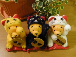 ぷーさんの招き猫 「頂き物」でもご紹介している「しろママ」さんから投稿して頂いた「ノラのママ」さんがお持ちの ぷーさんの招き猫が、やっと手に入りました。限定品ということで、どこを探してもなかったのですが、 探しに探して「がちっこるーむ」のおかぴょんさんに譲って頂きました。写真で見た時もかわいかった ですが実物はもっと愛らしいです。おかぴょんさん、ありがと〜。 かわいいお人形やテディベア、招き猫満載のおかぴょんさんの「がちっこるーむ」を覗いてみませんか?