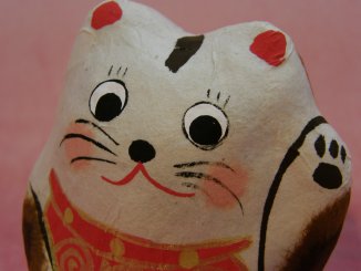 小川張り子招き猫さん 2009年9月、三重県伊勢で開催された「来る福招き猫まつり」から連れ帰った招き猫さん。 埼玉県の小川張り子。張り子の中に何か(?)入っていて「カラカラ」と音がします。