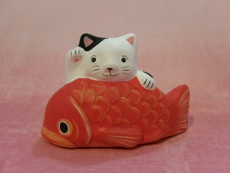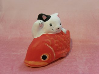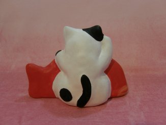 中野土人形招き猫さん 2009年9月、三重県伊勢で開催された「来る福招き猫まつり」から連れ帰った招き猫さん。 長野県中野市で郷土玩具土人形を創られている人形工房悠の池田翔吾さんの招き猫さん。 優しいお顔です。