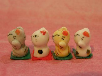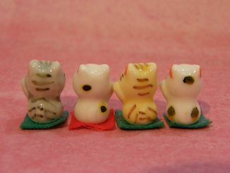 豆々招き猫さん 2009年9月、愛知県瀬戸で開催された「来る福招き猫まつり」から連れ帰った招き猫さん。 身長1.5cmあまりの小さい小さい招き猫さんたち。