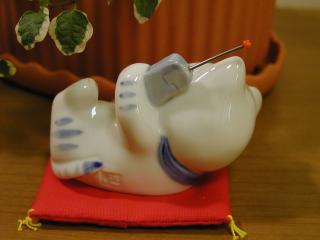 もしもし招き猫 2000年の酉の市は二の酉まででした。その酉の市で旦那さんのお母さんが買ってきてくださった 招き猫です。時代を反映してますねぇ。招き猫まで携帯ですよ。携帯で誰を招いているのでしょうか。