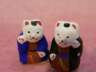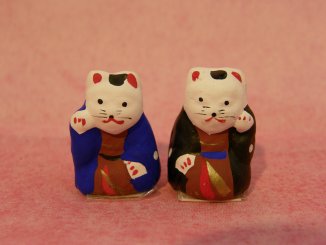 初辰猫さん 2009年9月、三重県伊勢で開催された「来る福招き猫まつり」から連れ帰った招き猫さん。 月に一度、大阪の住吉大社で授与される招き猫さん。 ねこ丼家では毎年一対づつ伊勢から連れ帰っています。