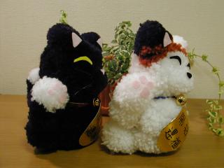 ぽんぽん招き猫 「にゃんこ訪ねて三千里」でもご紹介している「にぼし亭」いるかさんが作られた「ぽんぽんネコ」ちゃんです。 三毛猫さんは私のリクエストで作って頂き、プレゼントして頂きました。ありがと〜。 このホワホワ感が伝わるでしょうか? ぬいぐるみとも違う感触がとっても心地よいです。 上げた右手のにくきゅ〜や、ほわっとしたシッポもキュ〜ト。うちにもお招きした〜いという方は 「ねこ丼」又は「にぼし亭さん」へご連絡を!