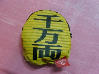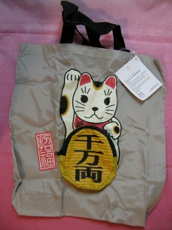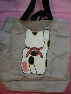 招き猫さんエコバッグ 千万両の小判の中にスッポリと収まる招き猫さんのエコバッグ。 ちょっと大きめ。かなり目立ちます(=^m^=)