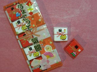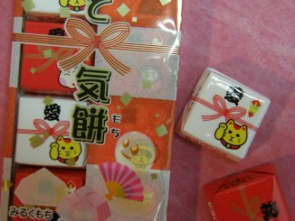 招き猫さん柄入りのチョコ。チョコレートの中にお餅が入ってました。
