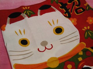 ふろしき招き猫さん 2010年9月に三重県伊勢で開催された「来る福招き猫まつり」から 連れ帰った招き猫さんの風呂敷。かなり大判です。