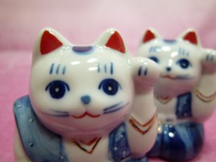 おみくじ招き猫さん 愛知県瀬戸で開催された「来る福招き猫まつり」期間に深川神社で出会った おみくじの招き猫さん。2011年は袴姿の少し大きめの招き猫さんでした。