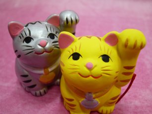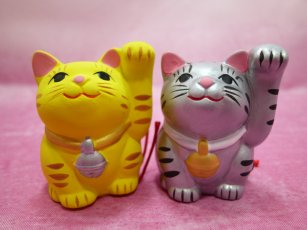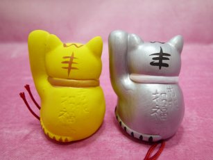おみくじ招き猫さん 2011年9月に三重県伊勢で開催された「来る福まねき猫まつり」から 連れ帰った招き猫さん。ねこ丼家毎年恒例「吉兆招福亭」の招き猫おみくじ。 2011年はシルバーの招き猫さんが登場。