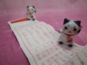 おみくじ招き猫さん 愛知県瀬戸で開催された来る福招き猫まつりの期間中のみ深川神社で販売される おみくじ招き猫さん。この招き猫さんは2012年のもの。