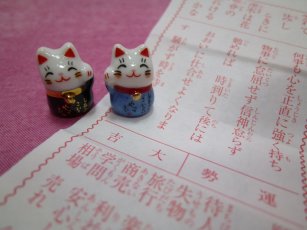 おみくじ招き猫さん 2014年のおみくじ招き猫さん。 同じ招き猫さんが愛知県瀬戸にあるおもだか屋さんにあったので、全種類連れ帰りました。