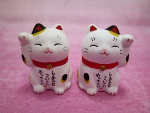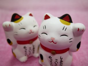 愛知県瀬戸にあるおもだか屋さんから連れ帰ったおみくじ付きの招き猫さん。