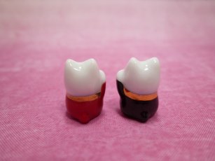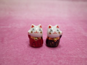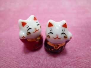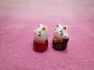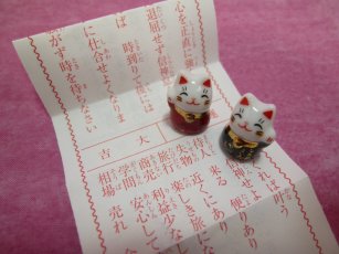 豆招き猫 愛知県瀬戸で開催された来る福招き猫まつりの期間中のみ深川神社で販売される おみくじ招き猫さん。この招き猫さんは2015年のもの。