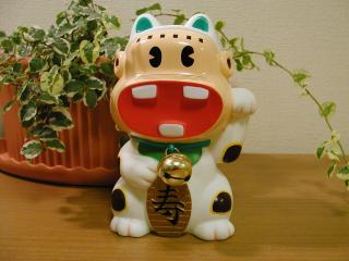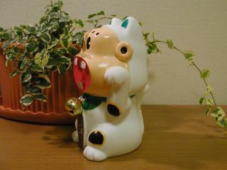 レレレのおじさん招き猫 どっひゃ〜! 一目見た時、叫んでしまいました。レレレのおじさんだぁ。 リサイクルショップの片隅で、小さくなってました。こんな所にいたのねぇ。 できれば、ほうきも持って欲しかった・・・。