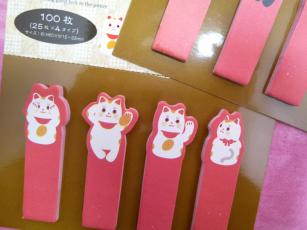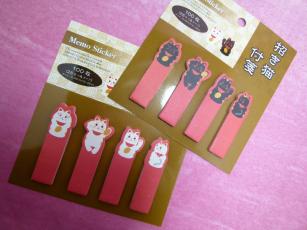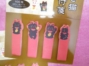 百均の招き猫付箋です。白猫さん、黒猫さんの2種類。
