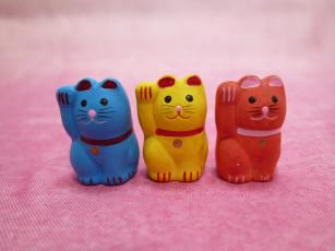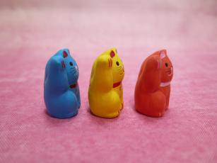 豆招き猫 愛知県瀬戸にあるおもだか屋さんから連れ帰った招き猫さん。 身長1.5cmほどの小さな招き猫さんです。