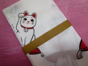 東京・豪徳寺の招き猫手ぬぐい。豪徳寺駅近くの雑貨屋さんからお招きしました。