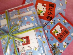 はろうきてぃ猫に小判 お誕生日の頂き物です。はろうきてぃ猫に小判シリーズ。ありがと〜! 左手上げのキティちゃんのレターセット、メモ帳、ノート。