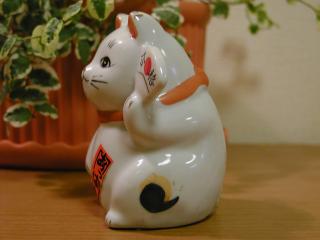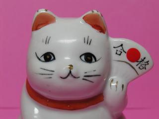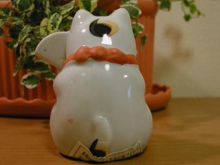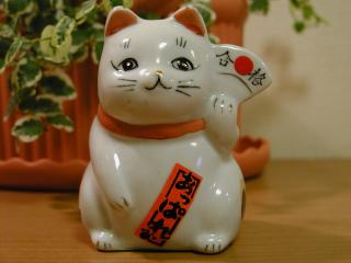 あっぱれ招き 地元にある厨房用品のリサイクルショップで出会った招き猫さんです。 「合格」の扇子を持っているってことは、やっぱり受験合格祈願の ネコさんなんでしょうね。前の持ち主さんは無事合格できたのでしょうか? お顔つきは、ちょっと頼りなげな感じですけどね(*^_^*)