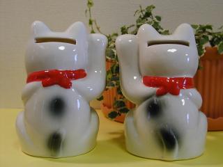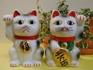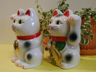 正統派招き猫さん 最近ちょっと変わった招き猫さんばかりだったので、 ここいらで、ごくごく普通の招き猫さんを! フリマへ行った時に見つけたネコさんです。 売っていた方に「どこかの招き猫ですかぁ?」と伺ったところ、 「いや〜別に普通の招き猫だよ〜」と言われました。にゃはは〜。 うんうん、確かに「フツ〜」だ(*^_^*) ん〜でも、やけに口が「への字」だよなぁ。