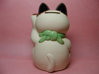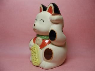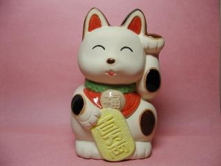 に〜っこり招き猫さん 型どりで簡単に(?)作られたような何の変哲もない招き猫さんですが、 お顔の表情がとっても気に入ったのでお招きしました。 ぷ〜ってほっぺを膨らませたような下膨れ(^^ゞのところがお気に入り。
