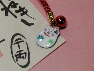 招き猫さん根付け 仙台土産の七宝焼き招き猫さん根付けです。 七宝焼きが仙台の名産品なのかは定かではありませんが、 いろいろな七宝焼き製品がありました。すっごく綺麗なんですね。 ネコさんものでなければ、じっくりと見ることもなかったかも(^_^;)