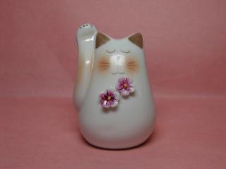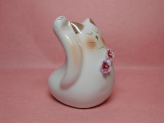 楊枝入れ招き猫さん う〜ん、お店の方は「楊枝入れ」って言ってましたけど、 花瓶として花とか飾った方が良いような感じがします。 胸に咲く2輪の花がポイント(o^^o)