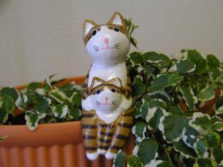 親子お座りネコ こにゃんこが、かわいいお座りネコです。 ねこ丼はインテリアのお店で買いましたが、インターネットでも購入できます。 680円でした。このにゃんこちゃんはネコグッズ専門店SabotenCatさんで購入できます。