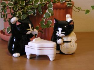 演奏会 「ねこの博物館」で購入しました。楽器を演奏するにゃんこの真剣な眼差しがいいですよね。 この他に、指揮者のにゃんこやドラムなど、5,6種類ありました。