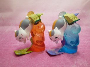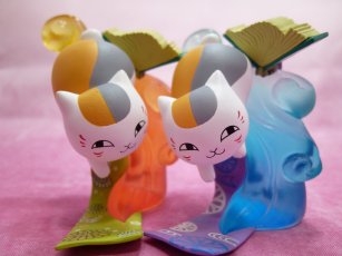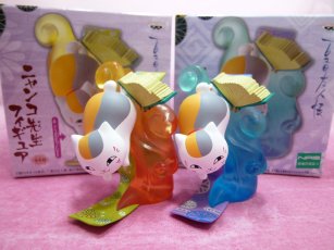 夏目友人帖ニャンコ先生フィギュア 夏目友人帖で活躍中(=^m^=)のニャンコ先生のフィギュア。表情、クリアパーツの色、帯の模様が違う2種類。 2011年9月のバンプレストクレーンゲーム景品でプライズ初のフィギャア。全4種類。 他に「ところてん」、「ケーキ&するめ」。 丁寧に作り込まれていてゲーム景品とは思えない完成度。すばらしいぃ\(^O^)/